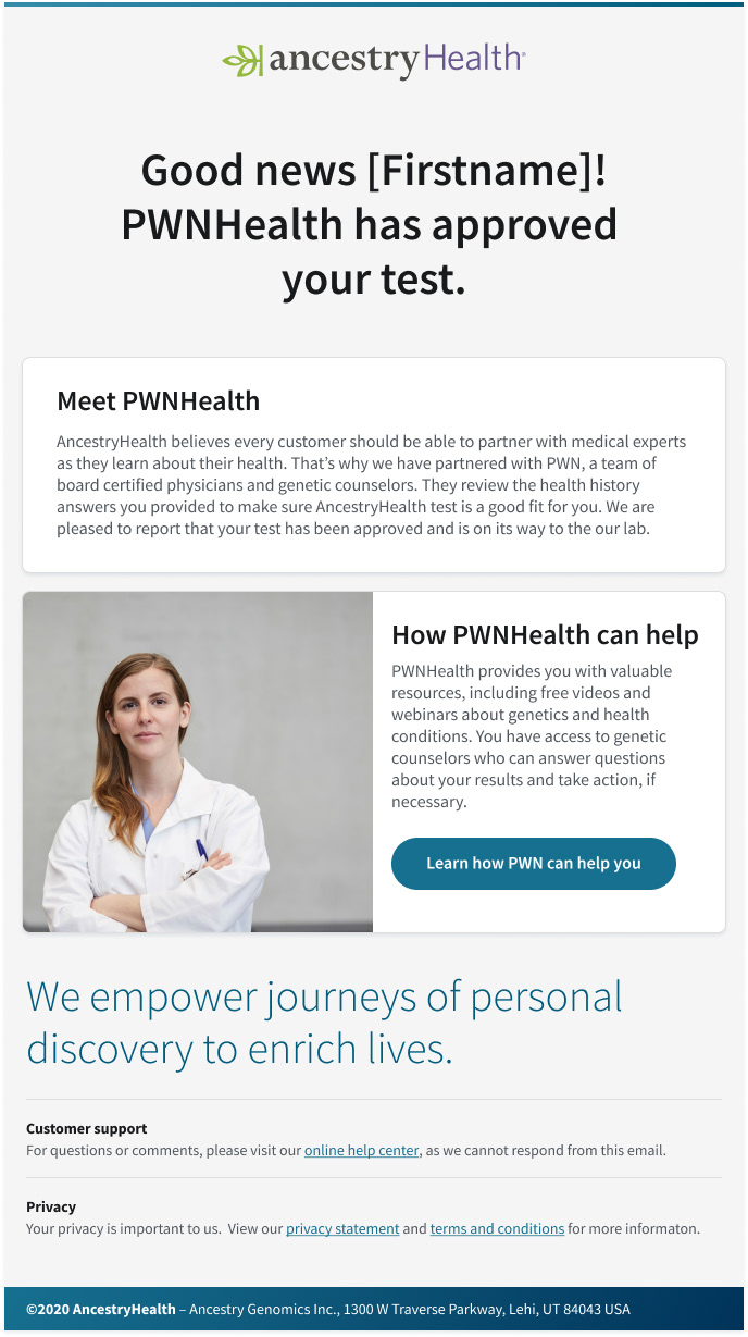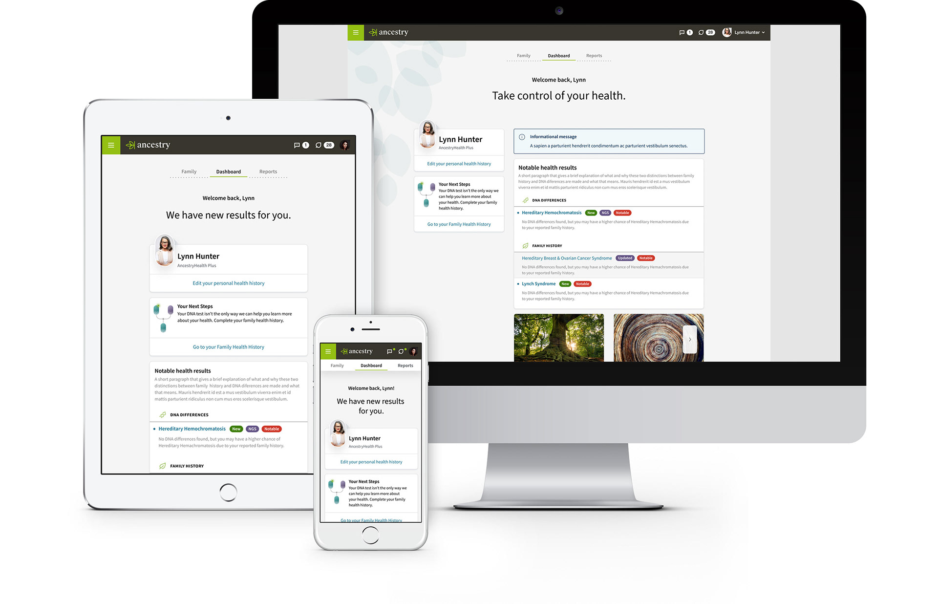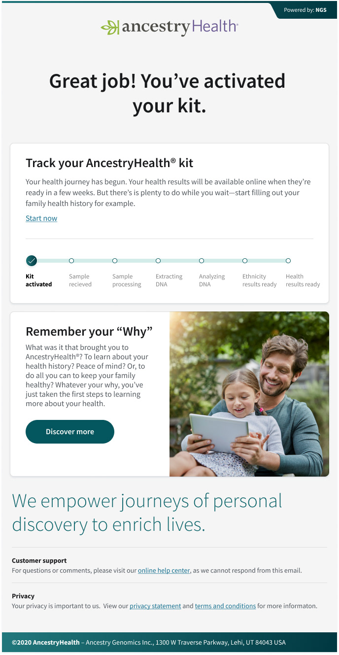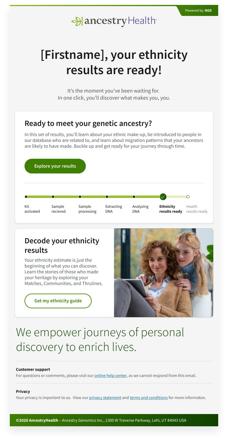 We created a digital health product, focused on the customer by utilizing ancestry's DNA data logistics to empower users to learn more about their health through DNA analytics. We built a fast and efficient experience—one that provided the precise information the user was looking for. Taking out the guesswork about inherited health risks when answers could be right here? AncestryHealth uses advanced genetic testing technology to give the customer a deeper view of their genetic health risks, so they can make the right calls for themselves and their family.