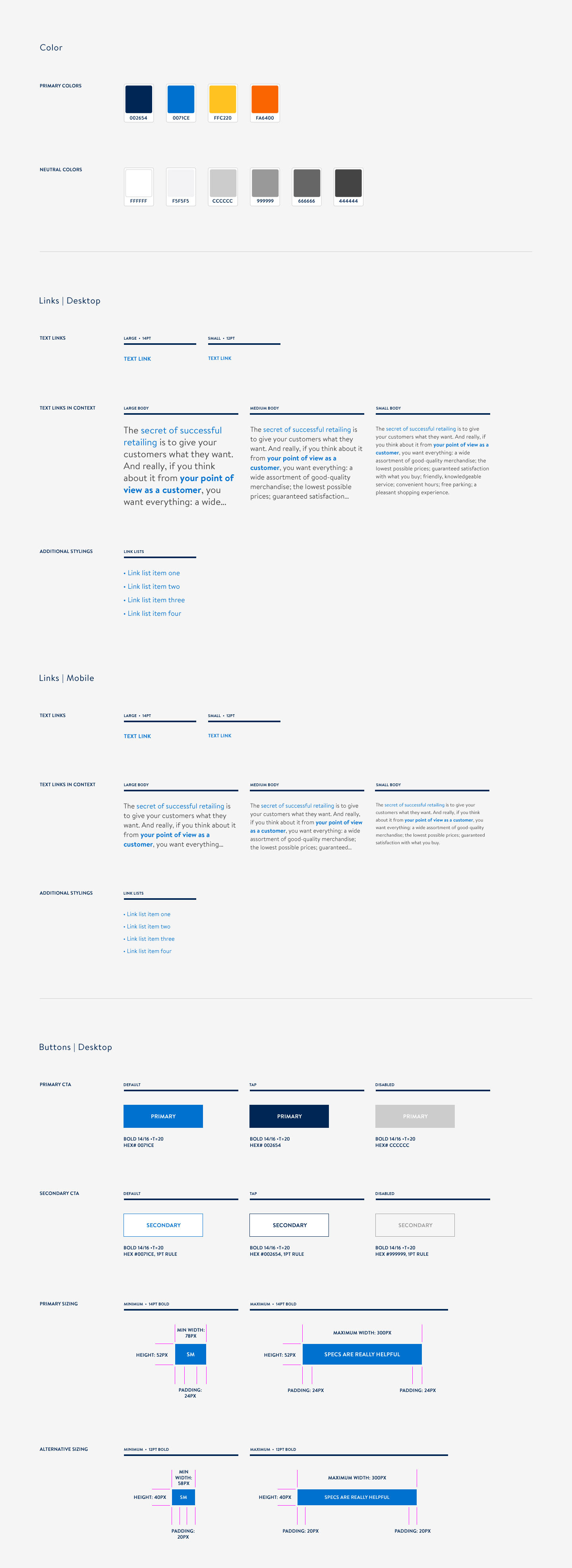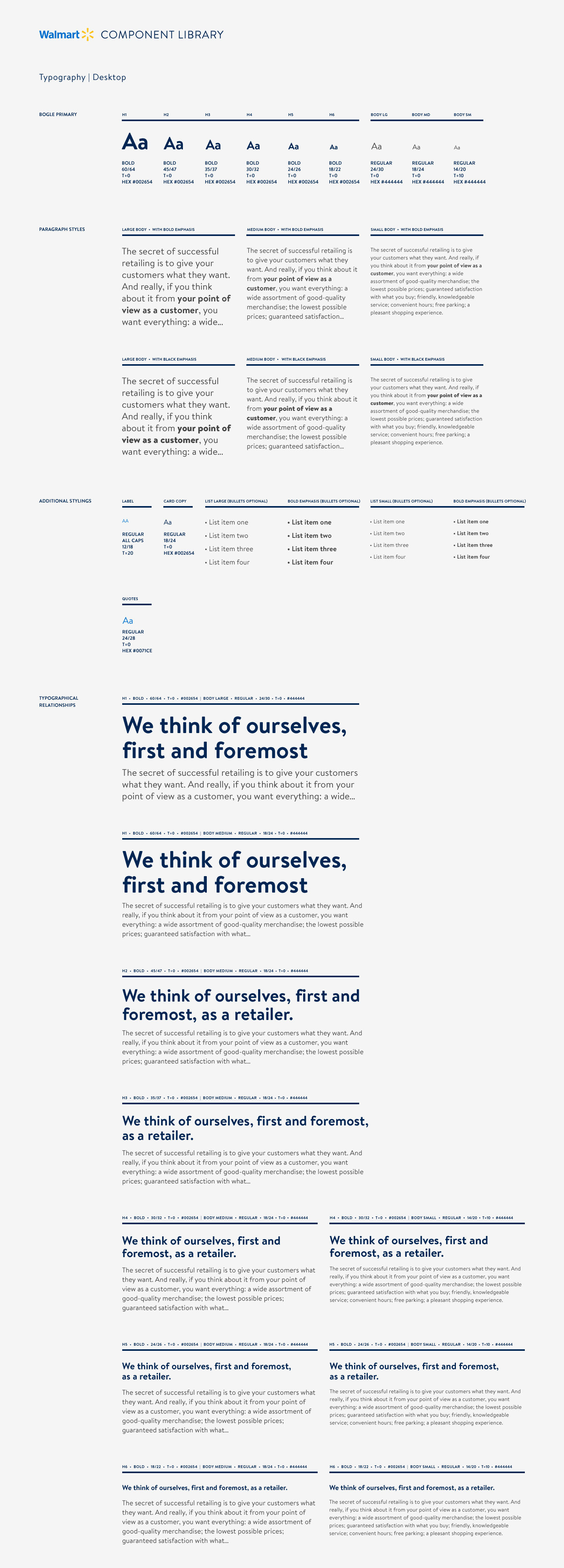 Create a streamlined, global pattern library system across all digital touchpoints, from native Apps to Walmart’s ecommerce platform. Efficiently implement this new system atop all existing digital assets, establishing it as the guiding standard for all future work.